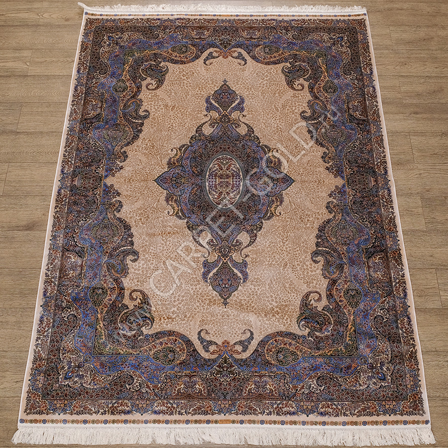 Ковер турецкий 2018A QUM (Шелк+Модал, синий, кремовый)
